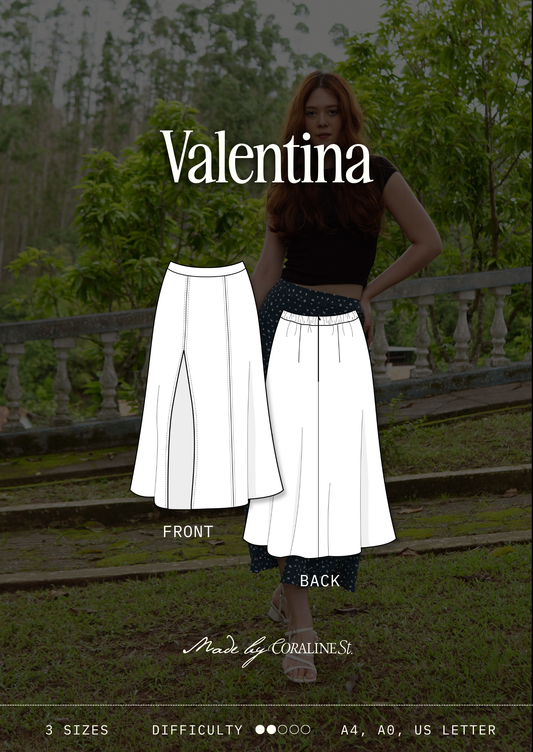 Valentina Skirt PDF Sewing Pattern | A-Line Skirt with Slit | Sizes 28-62