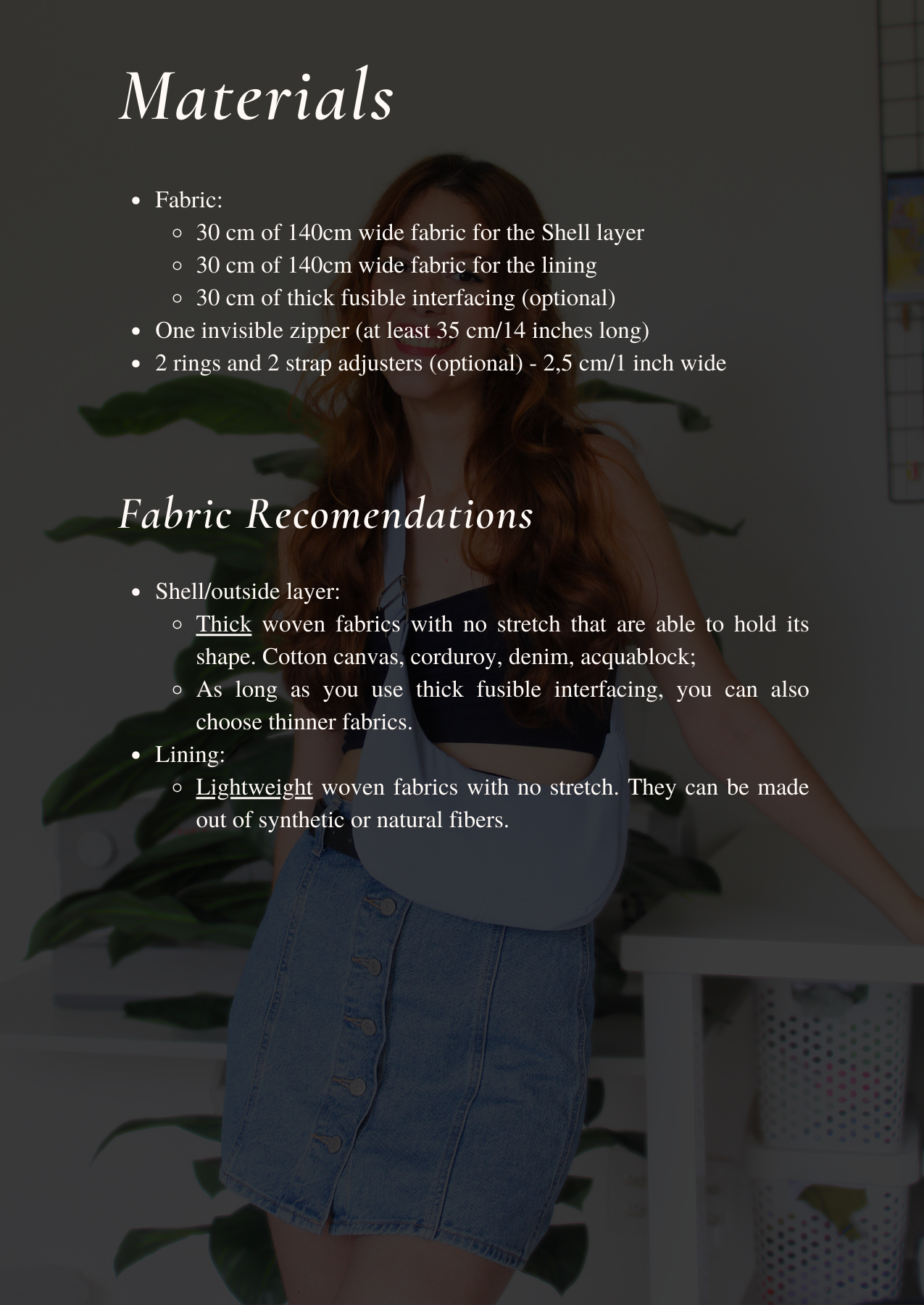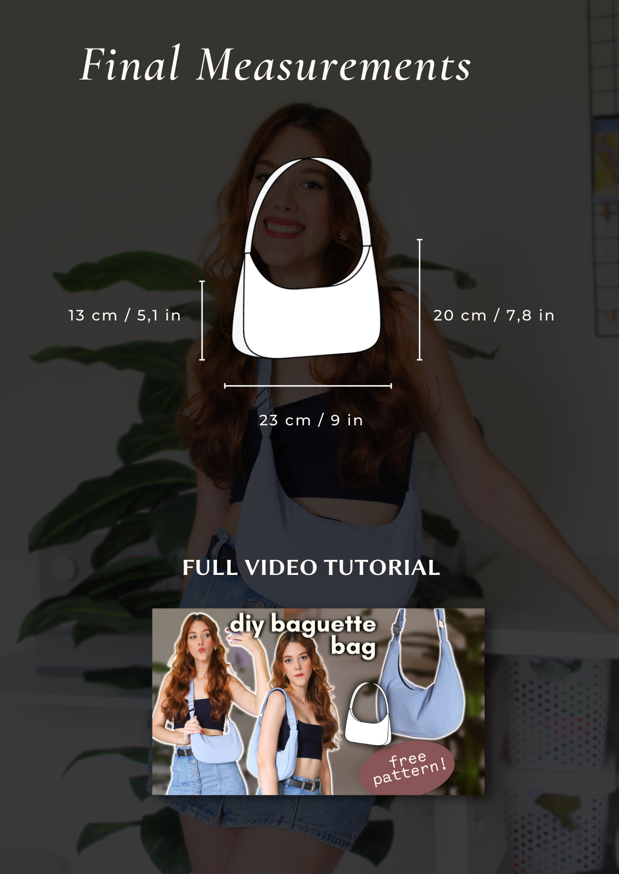 This Baguette Bag is simple and easy to make, with a minimalist design and adjustable straps. You can use it under your arm or as a cross-body bag. Use your imagination when making yours and choose different fabrics, colors and patterns to create your beautiful anfd unique version!